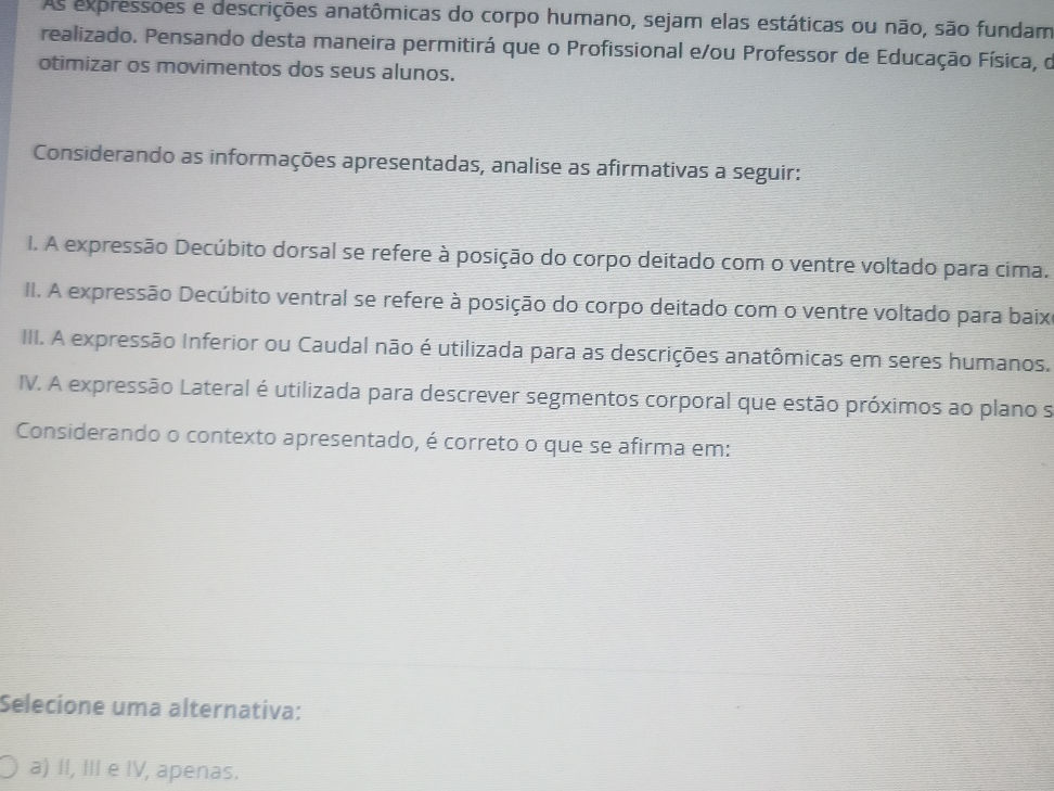 Conheça a resposta para Considerando as informações apresentadas , sobre as. Resp.: A alternativa correta é a letra "a) I, II e III, a. Confira a melhor respost.