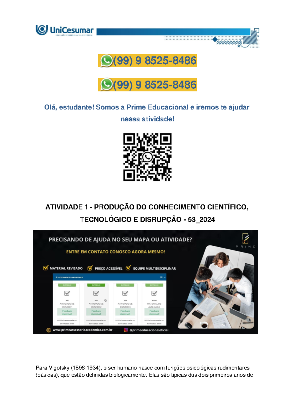 SANTANNA, A .; MIRANDA, A . C. T.; SANTIN, R. H. Teoria e Prática na Educação Infantil . Maringá: UniCesumar, 2018. Sendo assim, leia as alternativas e assinale a que especifica o que são funções mentais superiores .