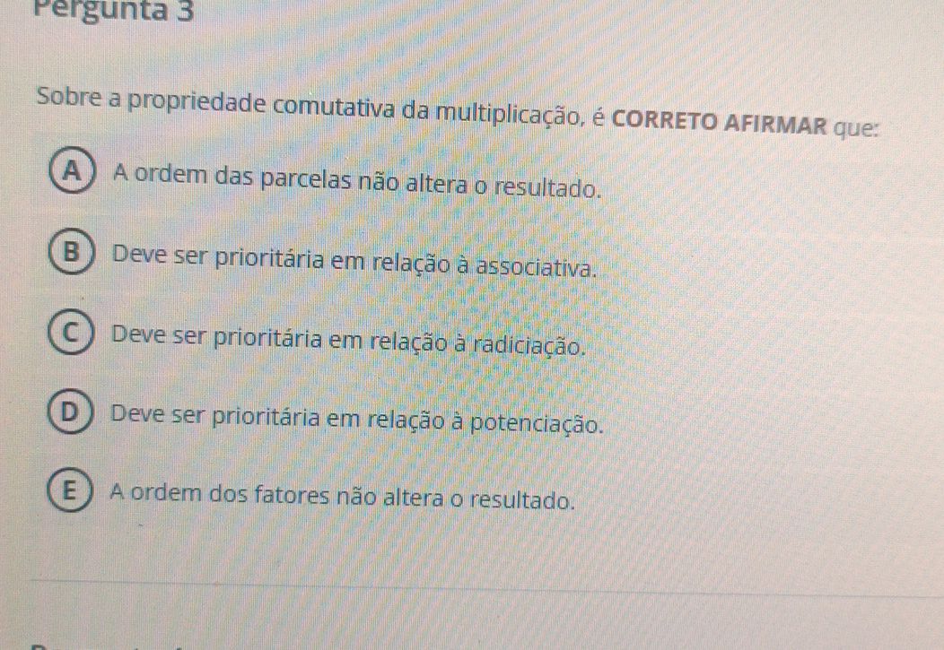 Sobre A Propriedade Comutativa Da Multiplicação é Correto Afirmar Que